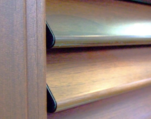Particolare dello spessore della persiana, lo spessore è di soli 30 mm, questo fa capire l'alta tecnologia della persiana Italia, condensata in soli 30 mm di spessore, alta resistenza e alta durabilità nel tempo. |