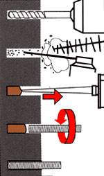 1. Forare la parete con la punta dal diametro di 14 mm