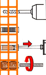 Nel caso di montaggio su un muro in mattoni forati la procedura è identica, l'unica avvertenza importante è quella di inserire nel foro, prima dell'erogazione del composto, un tassello a rete o a calza, in modo da contenere la quantità di composto erogata.