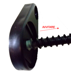 3. Avvitare il supporto fino contro lo spessore già posizionato di serie sul fermapersiane. (risulterà un pò duro da avvitare quando si arriverà contro lo spessore, non tentare di allargare il foro del supporto per agevolare l' avvitamento)