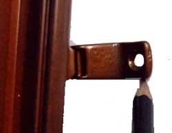 6. Riappoggiando il corpo del fermapersiane Rondine al muro esattamente nel perimetro precedentemente segnato andiamo a segnare con una matitai fori di fissaggio sul muro.