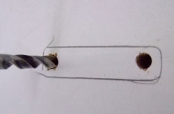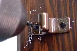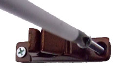 2. Eseguiamo i fori di fissaggio del riscontro sulla persiana. (su metallo si consiglia una punta del diametro di 2,5 mm mentre sul legno non si esegue il foro ma si avvita direttamente la vite di fissaggio). |